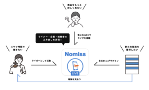 Nomissがあると、商品ページの中で配信が始まり、リアルタイムの説明やデモを見ながら検討できます。